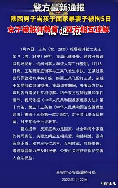 这起家暴事件虽然只是个别现象,但它揭示了家暴问题的严重性。我们要共同努力,消除家暴现象,让每一个家庭都充满阳光。而对于这起事件,我们相信,真相终将大白于天下。